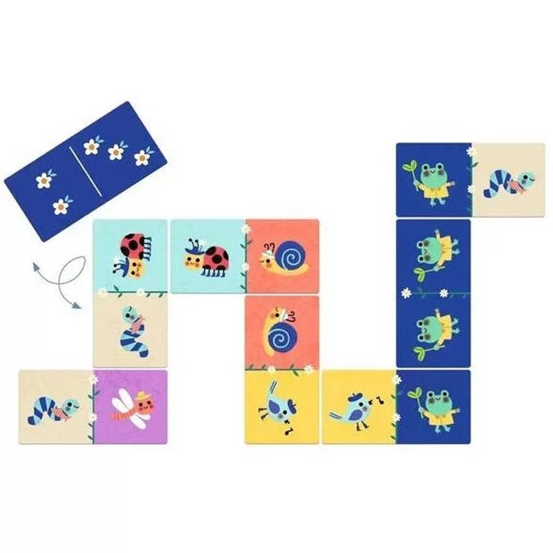 Ce Domino Petites bêtes, de 28 pcs, est un jeu intemporel pour apprendre à reconnaître les images, à les associer et à les nommer.