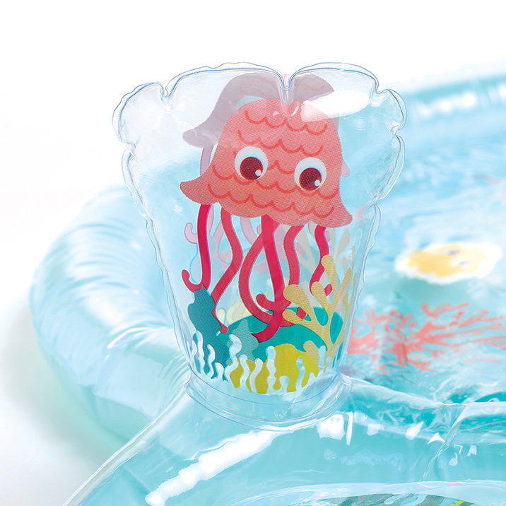 Le tapis de jeu encourage l’acuité visuelle et sonore, la dextérité et stimule l’imagination. Confortablement allongés sur le ventre, bébé développe par le jeu ses capacités motrices tout en s’amusant. Gonflez la structure manuellement. Le centre du tapis se remplit rapidement avec l’eau du robinet.