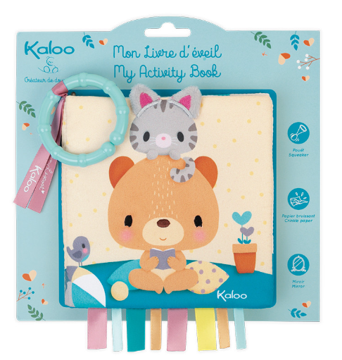 Ce livre d’éveil illustré raconte l’histoire de l’ours Choo de Kaloo à la maison avec ses parents et son petit chat. Il pleut dehors, Choo reste à la maison avec ses parents pour passer des moments calmes et tendres avec son chaton. Faites découvrir à bébé de belles illustrations avec des personnages aux expressions attachantes. Il inclut plusieurs activités d’éveil : papier bruissant, pouêt, miroir, flaps et rubans à tripoter. Ce livre illustré est idéal pour passer un moment privilégié avec bébé, l’aider à développer son imaginaire et développer ses sens.