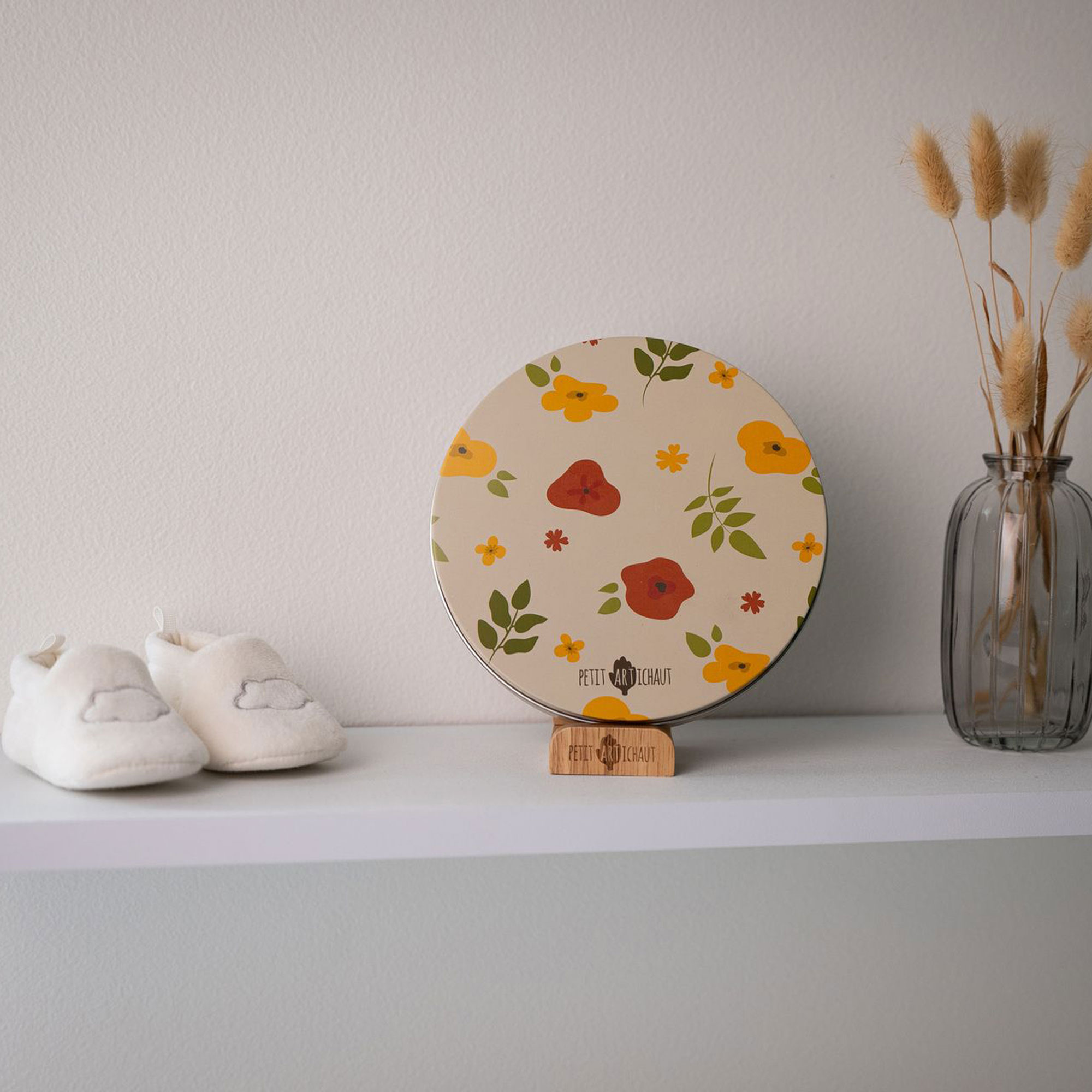 La Baby Box Ronde est un cadre à poser original pour créer un souvenir unique et personnalisé de bébé. Cette jolie boîte en métal permet de réaliser des empreintes de mains ou de pieds afin d’immortaliser ces instants uniques. La Baby box ronde s’intègre harmonieusement dans la chambre de l’enfant ou dans n’importe quelle pièce de la maison. La Baby box comprend une boîte métal ronde, un sachet de pâte hypoallergénique, un support, un rouleau en bois ainsi qu’un descriptif pour créer facilement l’empreinte.